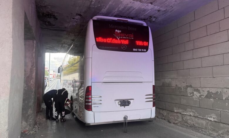 Vali Muammer Güler Alanı’nda idman yapan oyuncuları otele götüren 04 AS 250 plakalı otobüs, merkez Kocasinan ilçesi Bağdat Caddesi’ndeki alt geçide sıkıştı.