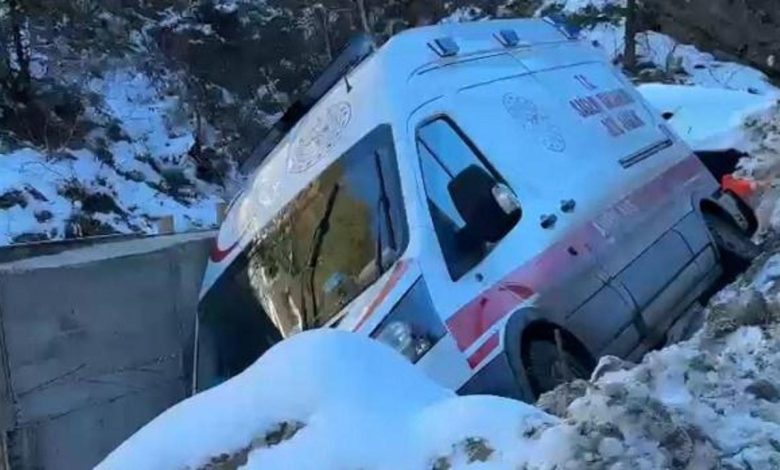 Kaza, gündüz saatlerinde Geçirimoluk Değirmendere mevkisinde meydana geldi. Hasta almaya giden ambulans, yoldaki buzlanma nedeniyle denetimden çıktı.