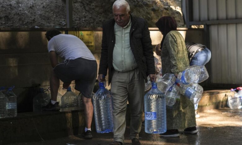 Ankara’nın Mamak ilçesinde yaşanan su kesintisi nedeniyle vatandaşlar etrafta bulunan çeşmelerden su temin ediyor.