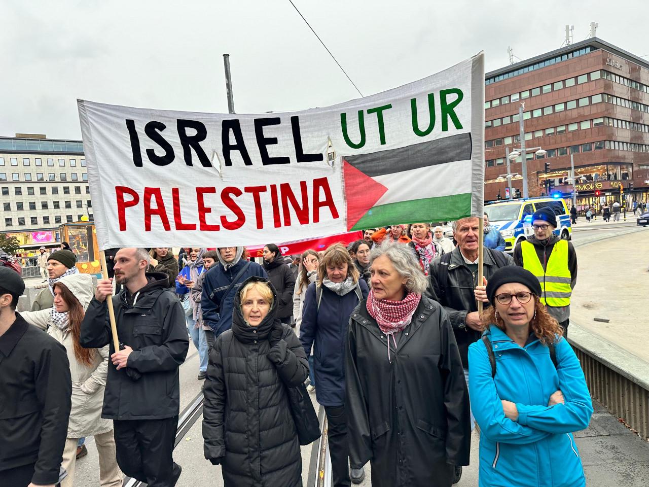 Çok sayıda sivil toplum kuruluşunun davetiyle Odenplan Meydanı’nda toplanan bireyler, İsrail ordusunun Global Sumud Filosu’na yönelik taarruzlarını kınayarak, İsveç hükümetinin İsrail’in tutukladığı İsveçli aktivistler için ses çıkarmamasını ikiyüzlülük olarak niteledi.