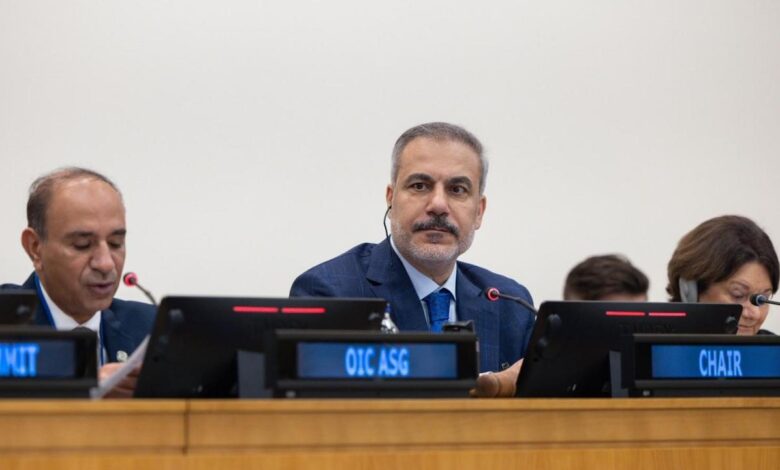 Bakan Fidan, Kıbrıs meselesi ile Yunanistan ve On İki Ada’daki Türk azınlıklarının haklarına da değinerek, “Kıbrıs sorunu ve Batı Trakya’daki Müslüman Türk azınlığı durumu dış siyasetimizin iki kıymetli unsurunu oluşturmaktadır. Tüm kardeş İİT üye devletlerini, Müslüman Kıbrıs Türkleri’nin özden gelen haklarını desteklemeye ve onlarla direkt temas kurmaya çağırıyoruz. Yunanistan’da, Batı Trakya’daki Müslüman Türk azınlık ve On iki Ada’daki Müslüman Türk nüfus, en temel hak ve özgürlüklerinden bile yararlanmalarını engelleyen önemli ihlallerle karşı karşıya olmaya devam etmektedir” sözlerini kullandı.