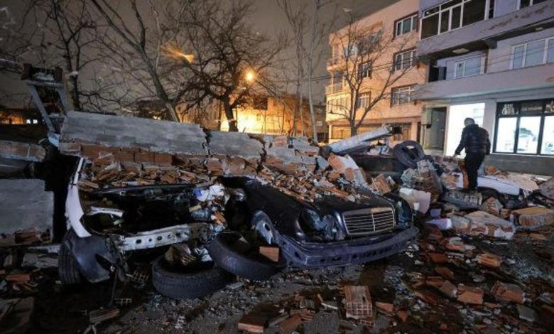 Duvar kenarında park halinde bulunan araba, minibüs ve pikap tipi 10 araç molozların altında kaldı.
