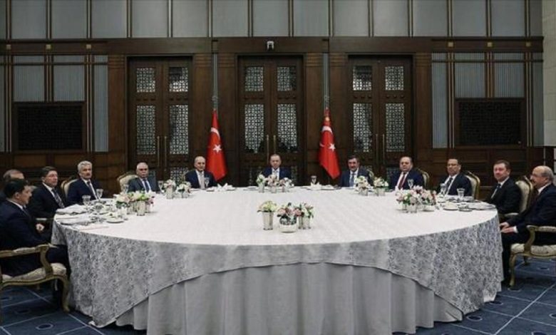 Cumhurbaşkanı Erdoğan’ın konut sahipliği yaptığı yemeğe; TBMM Başkanı Numan Kurtulmuş, Cumhurbaşkanı Yardımcısı Cevdet Yılmaz, Anayasa Mahkemesi Başkanı Kadir Özkaya, Yargıtay Lideri Ömer Kerkez, Danıştay Başkanı Zeki Yiğit ve Sayıştay Lideri Metin Yener katıldı.