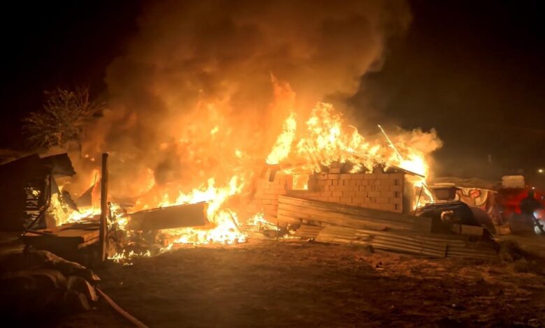 İtfaiye takımları müdahale ederken olay yerine kepçe ve greyderler de gönderildi. Alevlerin sardığı meskendeki yangını söndürme çalışmaları 2 saattir sürdürülüyor.