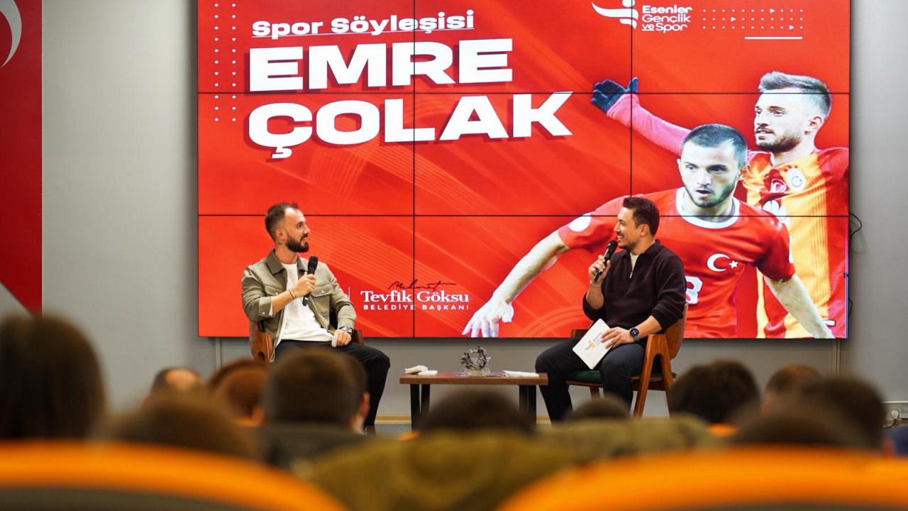 Esenler Belediyesi Gençlik ve Spor Hizmetleri Müdürlüğü’nün düzenlediği “Spor Söyleşisi” programının bu ayki konuğu, Esenler’in gururu eski ulusal futbolcu Emre Çolak oldu. Genç atletlerle bir ortaya gelen Çolak; Galatasaray yıllarından İspanya tecrübesine, Messi ve Ronaldo’ya karşı oynamaktan gelecek planlarına kadar birçok hususta içten açıklamalarda bulundu.