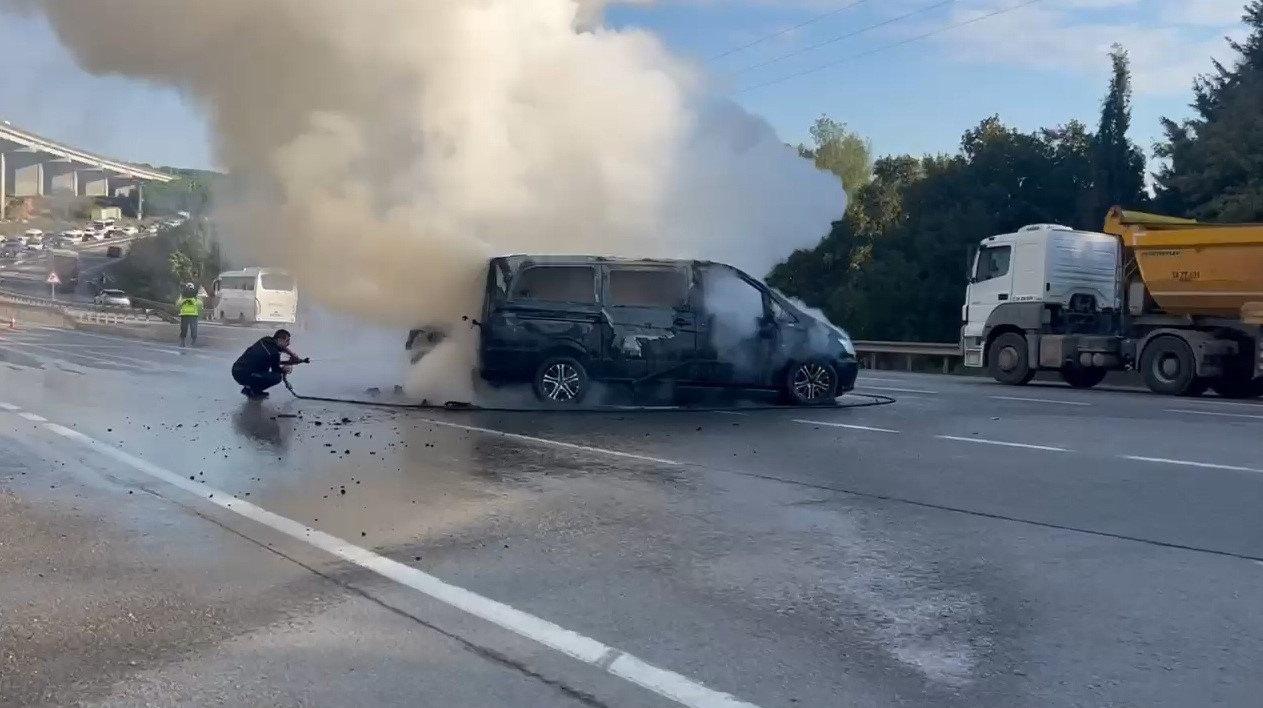 İhbar üzerine olay yerine itfaiye takımları sevk edildi. Grupların müdahalesiyle araç yangını denetim altına alınırken trafik akışı tek şeritten denetimli olarak sağlandı. Kazayla ilgili inceleme başlatıldı.