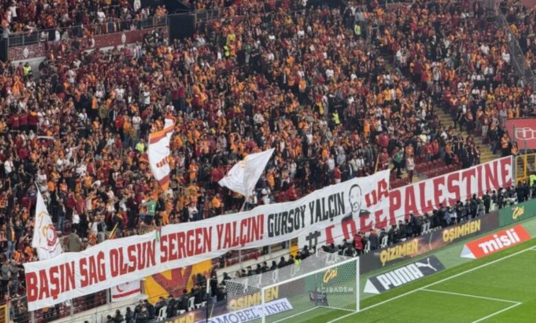 Galatasaray taraftarı, “Başın Sağ Olsun Sergen Yalçın! Gürsoy Yalçın” pankartı açtı.