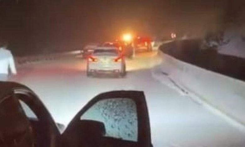 Kar yağışı yolu kapattı! 20 araç mahsur kaldı