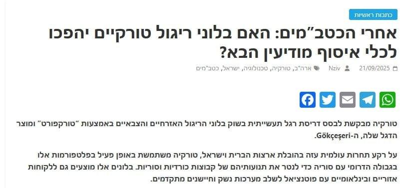 İsrail’de yayın yapan Nziv haber sitesindeki tahlilde, GÖKÇERİ’nin Türkiye’ye istihbarat, hudut güvenliği ve global pazarda stratejik avantaj kazandırdığı vurgulandı.