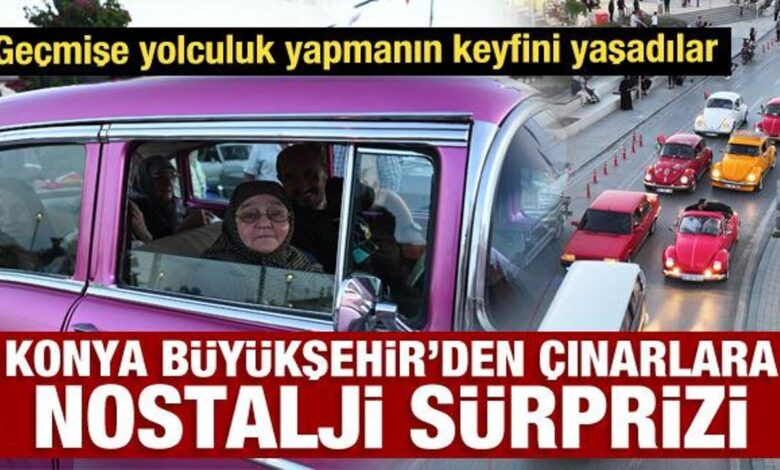 Konya Büyükşehir’den Huzurevi’ndeki büyüklerimize klasik araçlarla nostaljik sürpriz