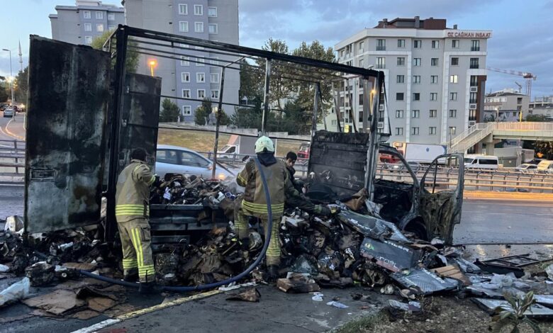 Küçükçekmece’de alev alan kargo yüklü kamyonet küle döndü