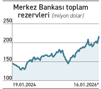 Net rezerv içinde bedellendirilen yurt içi bankalarla yapılan satım taraflı swap hacminin 16 Ocak haftasında 0.4 milyar dolar artmasının, net rezervi olumsuz etkilediğini belirten QNB ekonomistleri altın fiyatlarının yükselmesinin ise net rezervde 2.6 milyar dolarlık artışa yol açtığını belirtti. Kamunun döviz mevduatı da incelenen hafta içerisinde döviz cinsi 7 ve 12 yıl vadeli çift dilim tahvil ihracının tesiriyle 2.8 milyar dolar yükseldi. Ekonomistler “Sonuç olarak, bu saydığımız süreçler net rezervin geçen hafta 5 milyar dolar yükselmesine neden olmuştur. Net rezervdeki değişimi dikkate aldığımızda, bunun dışında kalan süreçlerle toplamda 3.1 milyar dolar döviz alışı gerçekleştiğini hesaplıyoruz” dedi. 9 Ocak haftasında da Merkez Bankası 6 milyar dolar düzeyinde alım yapmıştı.
