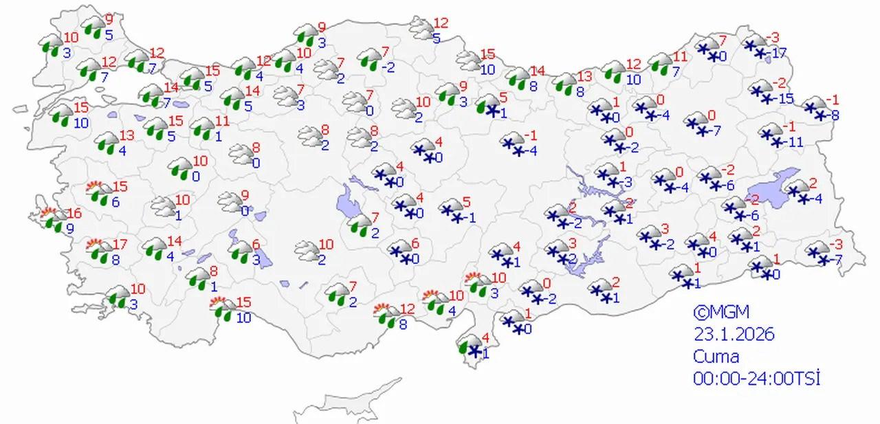 Doğu Anadolu ve etrafında yer yer kar yağışlarının devam edeceği, lakin yağışların evvelki günlere kıyasla daha zayıf ve aralıklı olacağı belirtiliyor. Cumartesi gününden itibaren doğu bölgelerde de hava sıcaklıklarının hissedilir derecede artması ve mevsim normallerine gelmesi bekleniyor.