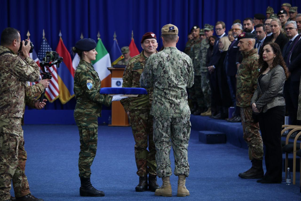 Cumhurbaşkanı Osmani, merasimde yaptığı konuşmada, KFOR’un yirmi yılı aşkın müddettir Kosova ve bölgede barış ve istikrarın temel taşı olduğunu söyledi.