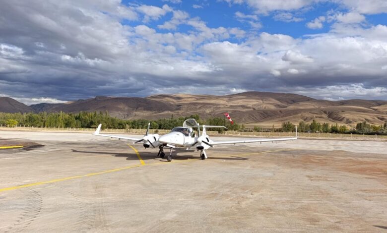 Pilotlar İlyas Erol ve Sezai Demirseren’in kullandığı sivil uçağı havaalanına inişinde, Divriği Kaymakamı Yunus Şit karşıladı.