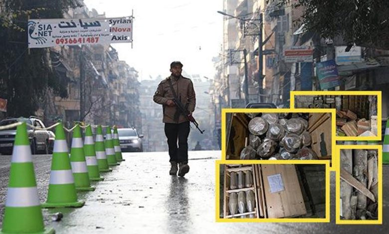 Suriye güvenlik güçlerinin 4 günde terörden arındırdığı Halep’in Şeyh Maksud ve Eşrefiye mahallelerine istiflenen terör silahları birer birer ele geçiriliyor.