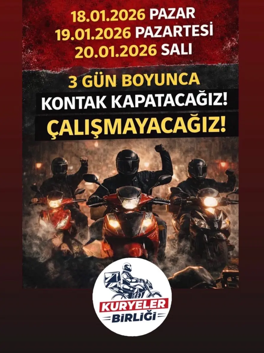 Kuryeler ise yapılan artırım oranlarının gerçeği yansıtmadığını, 2025 yılındaki yararlarla birebir karları elde ettiklerini, matematiksel oynamalarla göstermelik artırım yapıldığı savıyla 18-19-20 Ocak günlerinde kontak kapama aksiyonu yapacaklarını, paket dağıtmayacaklarını ve çalışmayacaklarını açıkladılar.