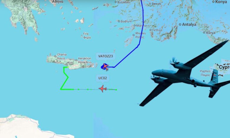Dean Shmuel Elmas’ın gönderisinde ayrıyeten Flightradar24’ten alınan uçuş manzaraları yer aldı. Haritalarda, “VATOZ23” davet koduyla uçan Türk İHA’sı ile “UC02” kodlu İsrail üretimli Yunan İHA’sının Doğu Akdeniz üzerinde birebir bölgede faaliyet gösterdiği görüldü.