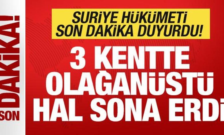Suriye hükümeti son dakika duyurdu: 3 kentte olağanüstü hal sona erdi