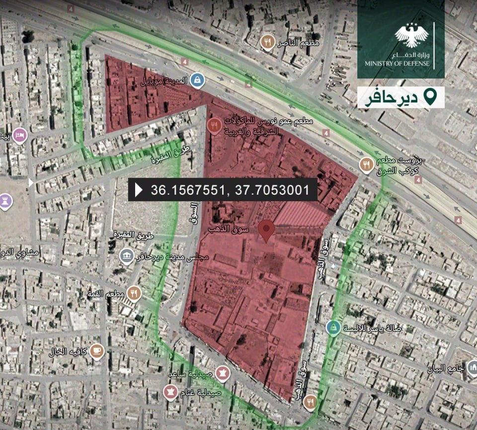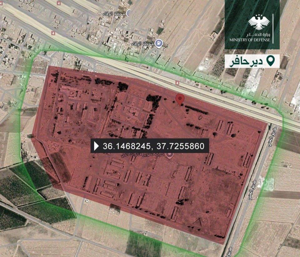 Suriye Savunma Bakanlığı, SDG tarafından askeri üs olarak kullanıldığı saptanan noktaların kesin coğrafik koordinatları kırmızı alanlarla belirtiyor. Bu noktaların sivil yerleşim yerlerine yönelik hücumlar için kullanıldığı vurgulanarak operasyon düzenleneceği tarafında evvelce ihtar yapılıyor. Deyr Hafir bölgesindeki stratejik binalar ve ulaşım çizgileri üzerindeki askeri yerleşimlerin de benzeri formda hava fotoğrafları ile dijital ortamda haritalandırıldığı görüldü.