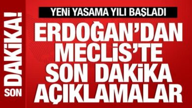 Türkiye Büyük Millet Meclisi yeni yasama yılına başlıyor. Cumhurbaşkanı Recep Tayyip Erdoğan, Özel Oturum'da açıklamalarda bulunuyor.