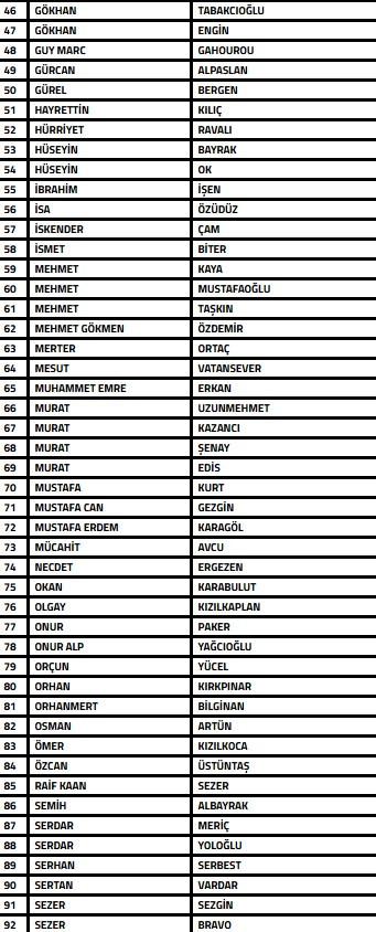 Sevk edilen isimler ortasında Sivasspor Teknik Yöneticisi Mehmet Altıparmak, teknik yönetici Hakan Keleş, Mustafa Alper Avcı, Gökhan Ünal, Sercan Yıldırım üzere isimler de yer aldı.