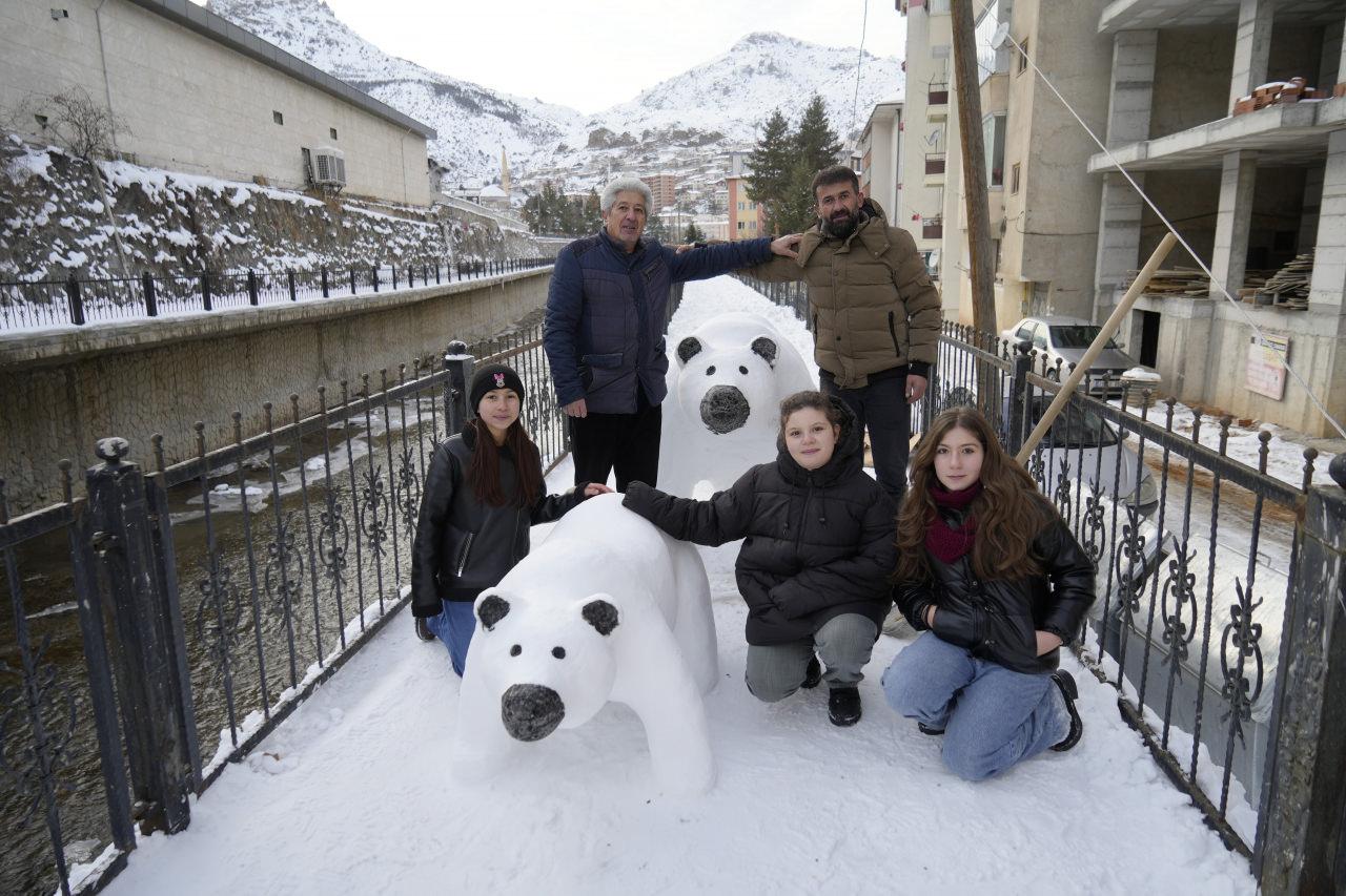 Tır şoförünün kardan yaptığı ayı ailesi ilgi odağı oldu