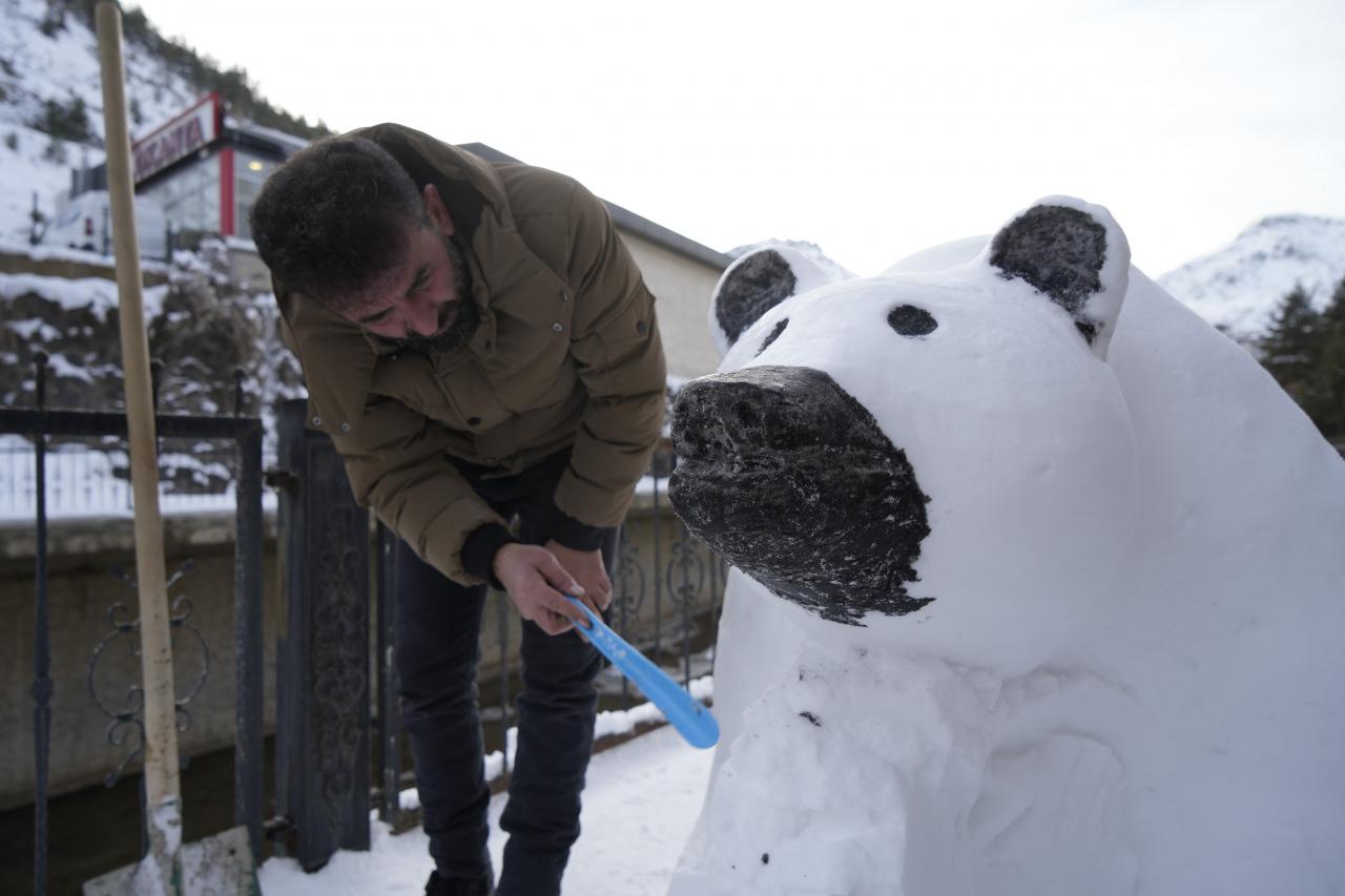 Kent merkezinde kar yağışını fırsata çeviren tır sürücüsü Cihan Oral, sırf kürek ve ayakkabı çekeceği kullanarak anne ayı ve yavrusunu karla şekillendirdi. Çocuklarıyla birlikte ortaya koyduğu çalışma, kısa müddette mahallede ilgi odağı haline gelirken vatandaşların da beğenisini topladı. Rastgele bir eğitim almadığını belirten Oral, kara kalem çizimlerinden farklı el işlerine kadar birçok sanat faaliyetiyle uğraştığını söyledi. Daha evvelki yıllarda da çeşitli figürlerde kardan heykeller yapan Oral, kar yağdığında bunu sanata dönüştürmekten büyük keyif aldığını tabir etti.