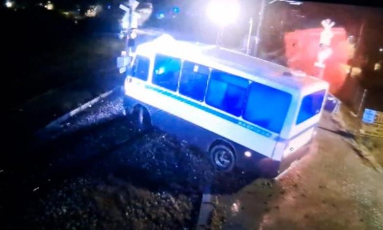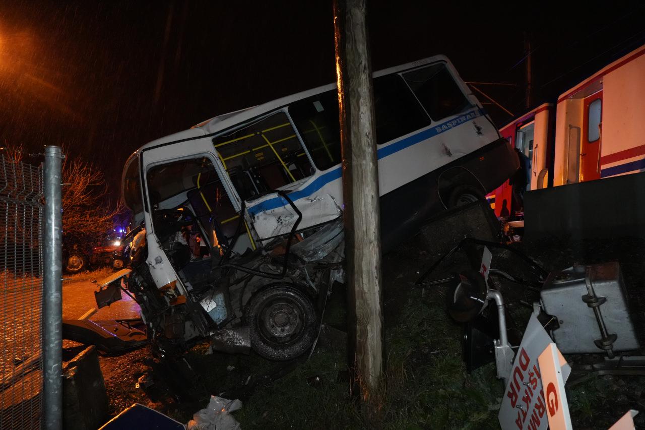 Tren rayda kalan dolmuşa çarptı, sürücü saniyelerle kurtuldu