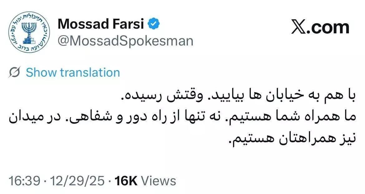 Bununla birlikte İsrail istihbarat servisi Mossad da İranlılara yönelik direkt bir bildiri yayımlayarak sürece dahil olduğunu duyurmuştu. Protestoların devam etmesi istikametinde davette bulunan İsrail istihbaratı, eylemcilere yalnızca kelamlı değil, “sahada” da fiili takviye verdiklerini açıklamıştı. Bu açıklama, İsrail’in İran içindeki olaylara direkt müdahil olduğuna dair resmi bir itiraf niteliği taşıyor.