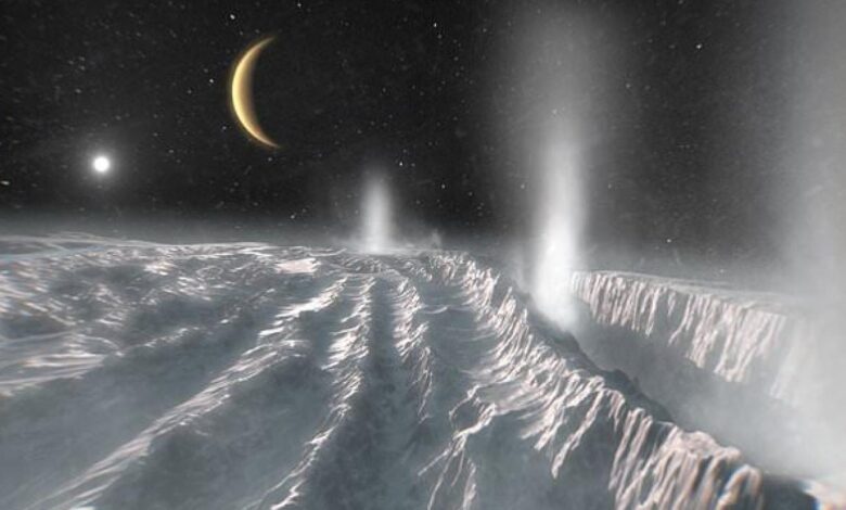 Avrupa Uzay Ajansı (ESA) tarafından yapılan açıklamaya nazaran, uydunun güney kutbundaki buzlu yüzeydeki çatlaklardan daima olarak uzaya fışkıran küçük buz taneleri, hayat için gerekli şartları taşıyor.