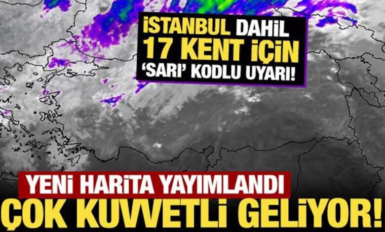 Yeni harita yayımlandı: İstanbul dahil 17 kent için ‘sarı’ kodlu uyarı!