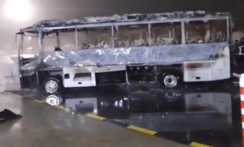 Yolcu otobüsü alev topuna döndü